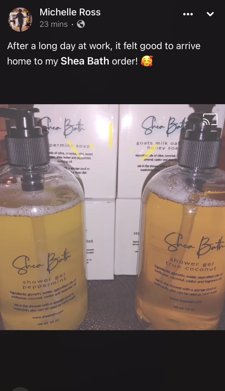 Absolutely LOVE what this shower gel has done for my skin. I started using Shea Bath shower gel and body butter about 2 years ago, when I made the decision to GET HEALTHY! I knew it had to be more than just dropping some pounds! I had to embrace a Healthy lifestyle all the way around, which meant including BETTER SKIN CARE for my aging skin. Being over 50, it became super important for me to natural products that were better for my skin without a bunch of chemicals I didn’t need! Shea Bath has surpassed all my expectations and now I’m NEVER GOING BACK to grocery store soap!🫣😅🫶🏽🙌🏽 Thank you Shea Bath!!😘